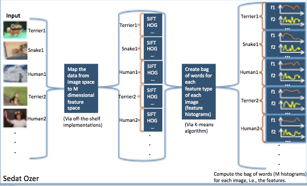 If you ever used Google's image search engine by uploading an image, you may have noticed that, while it works quiet impressive, it is still far from being perfect (or near perfect). The fundamental problem in such image based search systems is defining and describing the most "similar image". A succesful image based search system would first analyze the contents of the given input image, and then lists the images including the most similar content among all the available images in a given database (such as Google's image database). In this project, I developed various steps of such an image retrieval system. These steps included image analysis, feature computation, feature selection and classification. Check our related papers: IEEE Asilomar paper or my book chapter in Computer Vision Handbook.